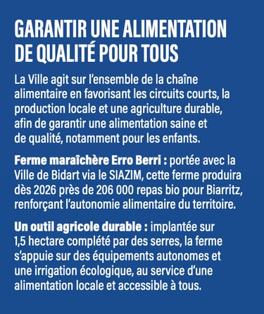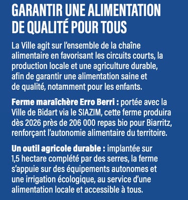 Préserver notre cadre de vie n’est pas une option mais une responsabilité, et c’est le cap que nous avons suivi depuis le début du mandat. À l’échelle du territoire et en lien avec la Communauté d’agglomération du Pays Basque, nous avons déployé une politique ambitieuse, centrée sur la protection de l’Océan, le renforcement des falaises et la réconciliation entre la ville et la nature, avec la création de continuités écologiques dans tous les quartiers.